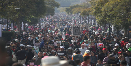 ▲ Mientras las autoridades prevén alcanzar un récord de 13 millones de visitantes para el domingo, los alrededores de la Basílica amanecieron ayer convertidos en un verdadero tianguis, en el que la fe y el consumo se entrelazaron, y donde las quejas de los peregrinos no faltaron ante el aumento en los precios de artículos religiosos, ropa y comida. Asimismo, el tropel de fieles dejó 536 toneladas de basura a lo largo de 279 kilómetros, por lo que un ejército de mil 800 trabajadores se dio a la tarea de limpieza. Foto Yazmín Ortega Cortés. D. López Aguilar
