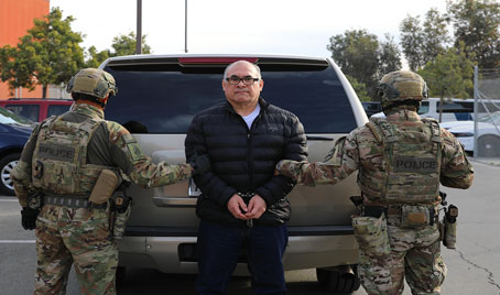 ▲ Luego de 17 años de estar encarcelado en Estados Unidos, el narcotraficante mexicano Osiel Cárdenas Guillén, ex líder del cártel del Golfo y fundador de Los Zetas, fue entregado ayer al país y recluido en el penal de El Altiplano para enfrentar nuevos cargos, que podrían llevarlo a recibir una condena de 730 años de prisión. Foto ICE. Agencias