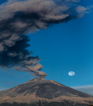 ▲ A la par de la última Luna llena del año, el volcán Popocatépetl tuvo ayer 31 exhalaciones y 121 minutos de tremor, de acuerdo con el Cenapred. El semáforo de alerta sigue en amarillo, con el exhorto de respetar el radio de exclusión de 12 kilómetros a partir del cráter. Foto José Carlo González
