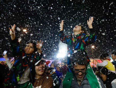 ▲ Tres árboles de Navidad, adornados con nochebuenas cultivadas en la capital, junto con una enorme piñata, túneles de luz y nieve artificial, son parte de los atractivos que se ofrecen en la verbena durante estos días de asueto. También hay música, con conciertos de diversos grupos, pastorelas y venta de artesanías.