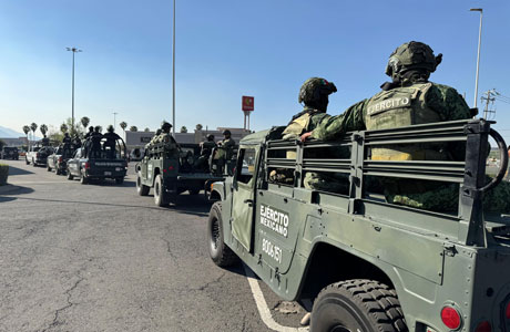 ▲ Debido a que el contrato de arrendamiento de 670 patrullas –por el que se pagaban 20 millones de pesos mensuales– concluye el 31 de diciembre y las autoridades municipales no han informado si continuará, las empresas Casanova e Integra empezaron a retirar por bloques las unidades. En el operativo especial Reforzamiento Ecatepec participan 250 efectivos de la Defensa, Guardia Nacional y Secretaría de Seguridad mexiquense. Foto La Jornada / Javier Salinas Cesáreo, corresponsal