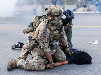 ▲ La subsecretaria de prensa de la Casa Blanca anunció que el presidente Donald Trump autorizó la movilización de los guardias nacionales a Chicago. Esto, luego de que se desataron enfrentamientos entre civiles y policías, derivados de que agentes de la Patrulla Fronteriza dispararon contra una activista pro migrantes identificada como Tricia McLaughlin, quien fue trasladada a un hospital. En la imagen, detenciones en el vecindario de Brighton Park de dicha ciudad. Foto Ap
