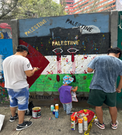 ▲ Pinta en honor a la Global Sumud Flotilla, en la colonia Roma. Foto Luis Castillo.